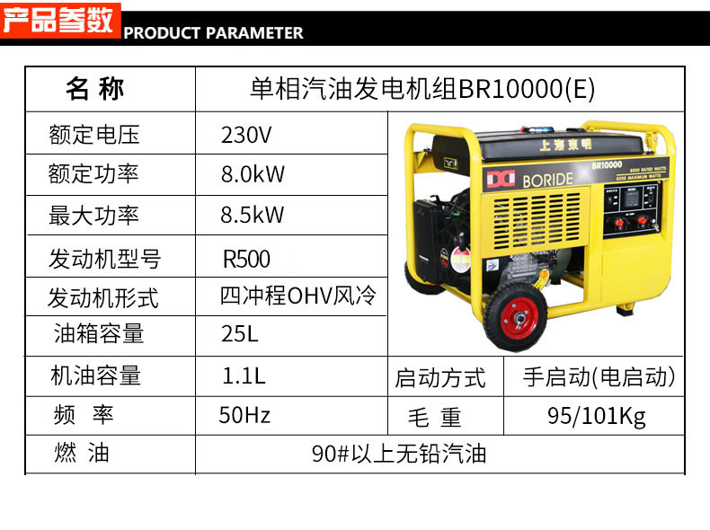 單缸汽油發電機組BR10000(E)
